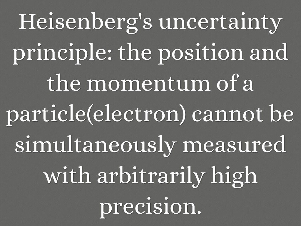 Heisenberg's uncertainty principle: the position and the momentum of a particle(electron) cannot be simultaneously measured with arbitrarily high precision.