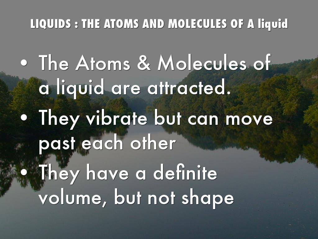 LIQUIDS : THE ATOMS AND MOLECULES OF A liquid