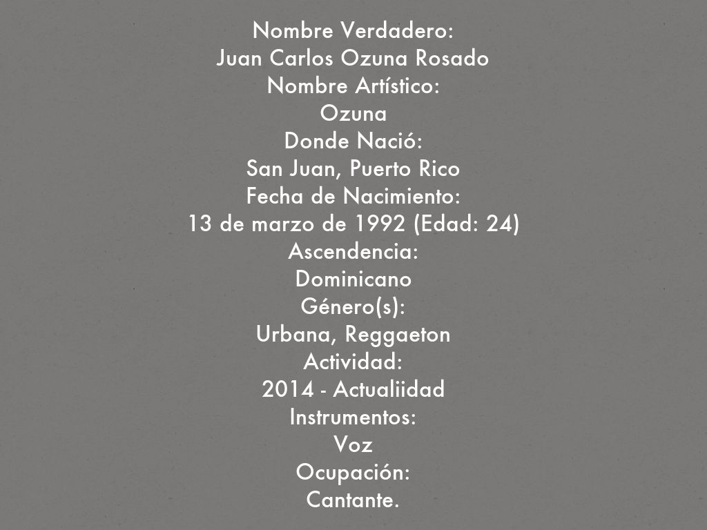 Jan Carlos Ozuna Rosado, nombre de pila del artista, nació en San Juan Puerto Rico, pero es hijo de padres dominicanos y conocido artísticamente como Ozuna.