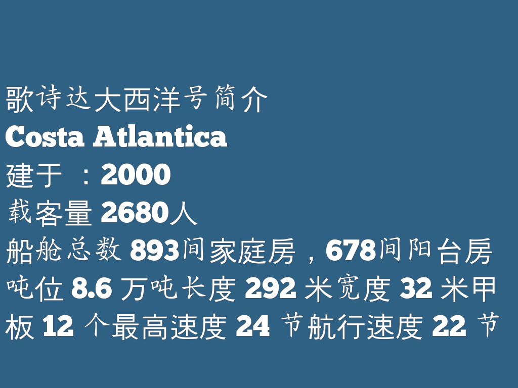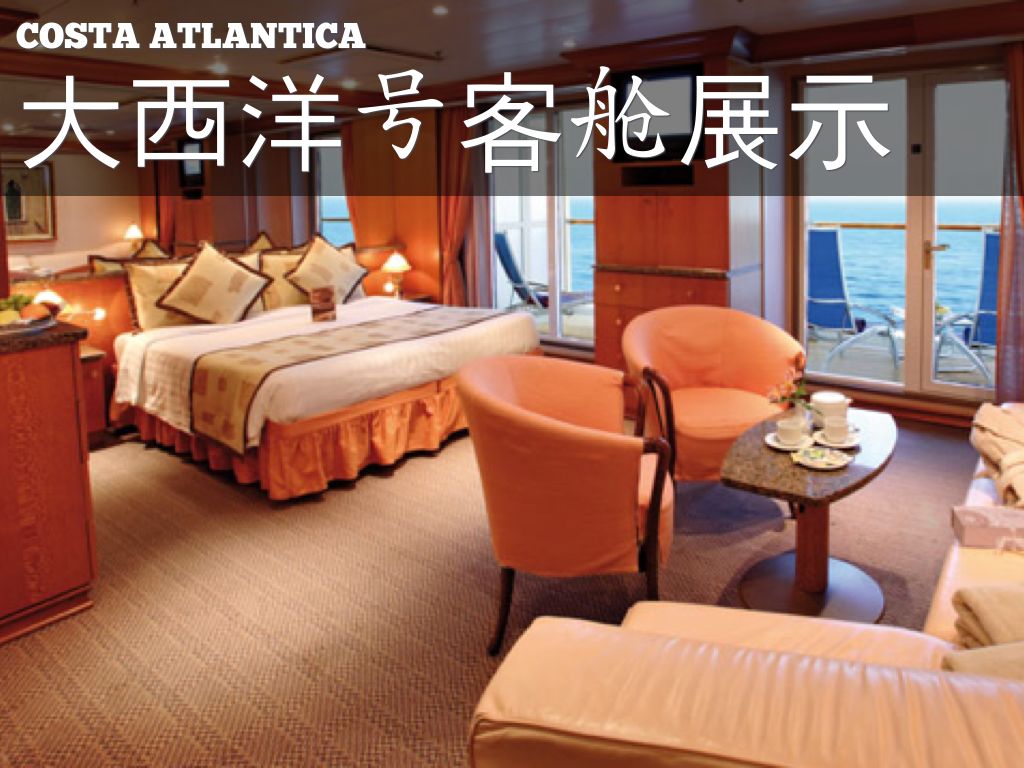 大西洋号来自意大利歌诗达邮轮公司,歌诗达是全球排名前十的邮轮公司,同时也是欧洲第一大邮轮公司。歌诗达邮轮旗下拥有欧洲最大的船队,包括歌诗达邮轮大西洋号、歌诗达邮轮维多利亚号、歌诗达邮轮赛琳娜号、歌诗达邮轮幸运号等15艘在役的意大利籍邮轮。今天主要介绍大西洋号的客舱和船上最著名的三个设施