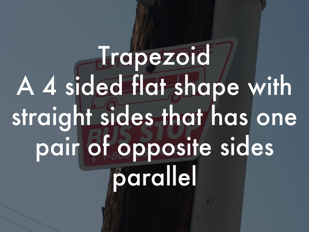 A 4 sided flat shape with straight sides that has one pair of opposite sides parallel