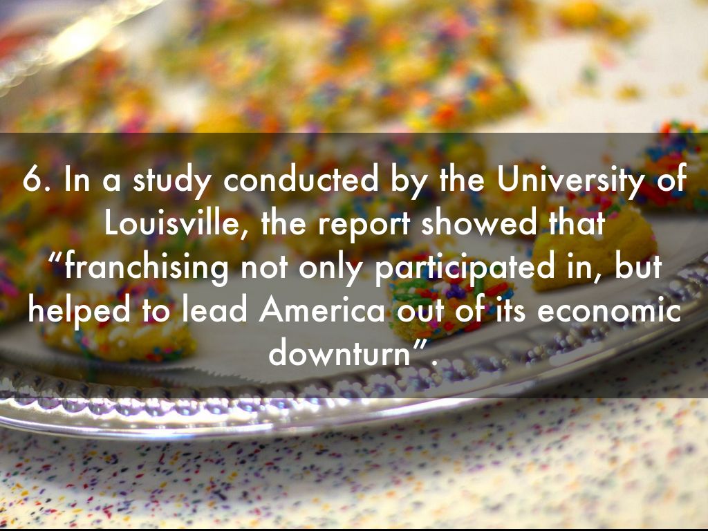 6. In a study conducted by the University of Louisville, the report showed that “franchising not only participated in, but helped to lead America out of its economic downturn”.