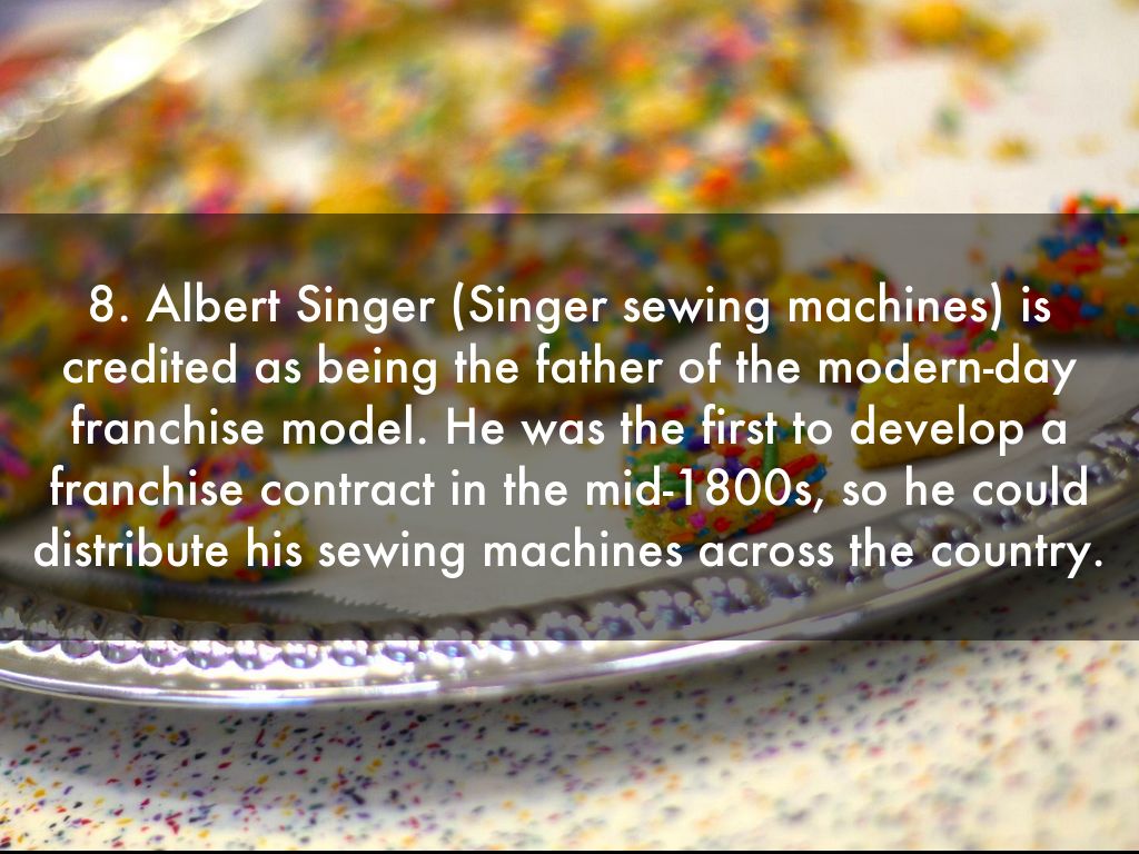 8. Albert Singer (Singer sewing machines) is credited as being the father of the modern-day franchise model. He was the first to develop a franchise contract in the mid-1800s, so he could distribute his sewing machines across the country.