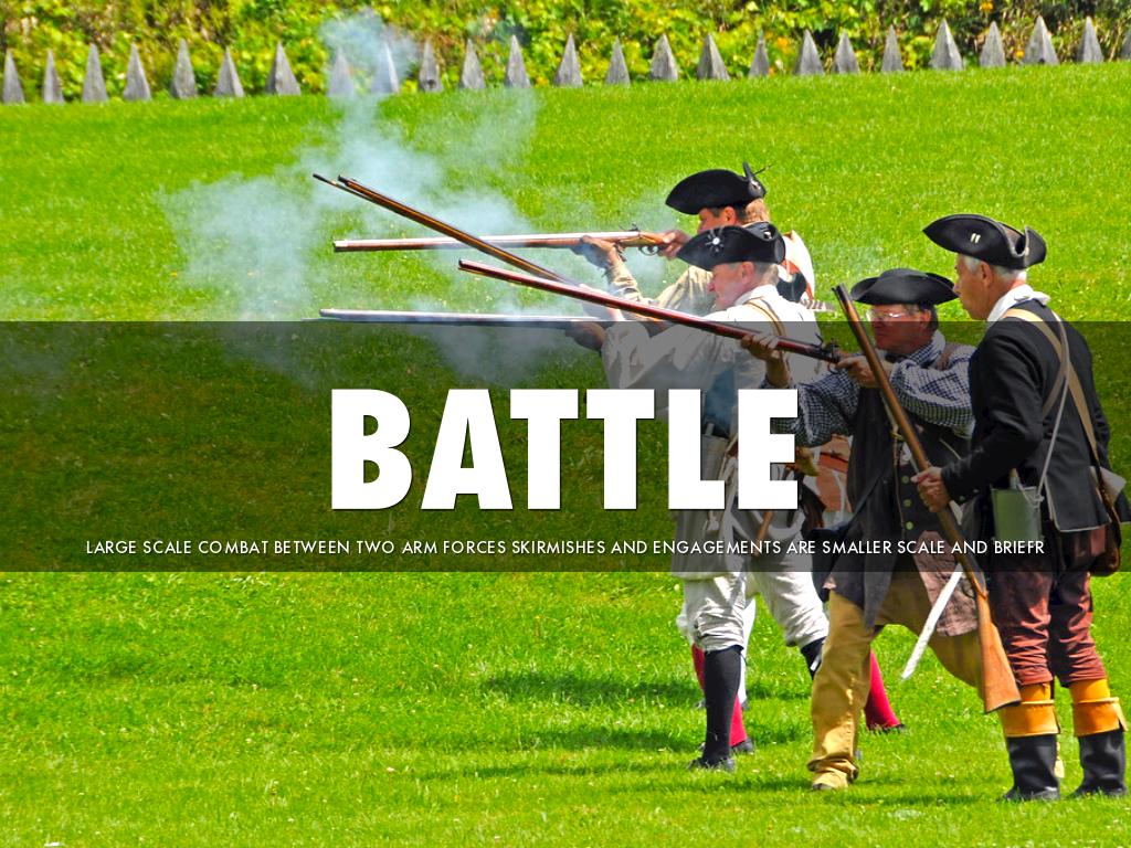 LARGE SCALE COMBAT BETWEEN TWO ARM FORCES SKIRMISHES AND ENGAGEMENTS ARE SMALLER SCALE AND BRIEFR