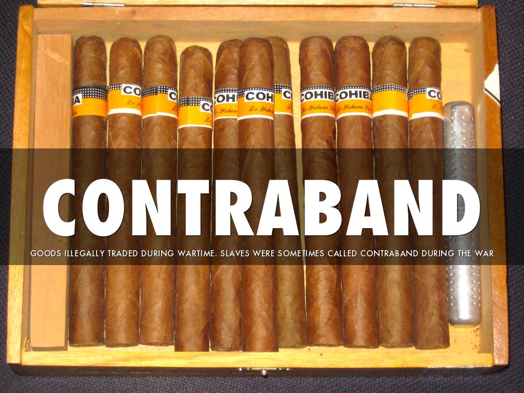 GOODS ILLEGALLY TRADED DURING WARTIME. SLAVES WERE SOMETIMES CALLED CONTRABAND DURING THE WAR