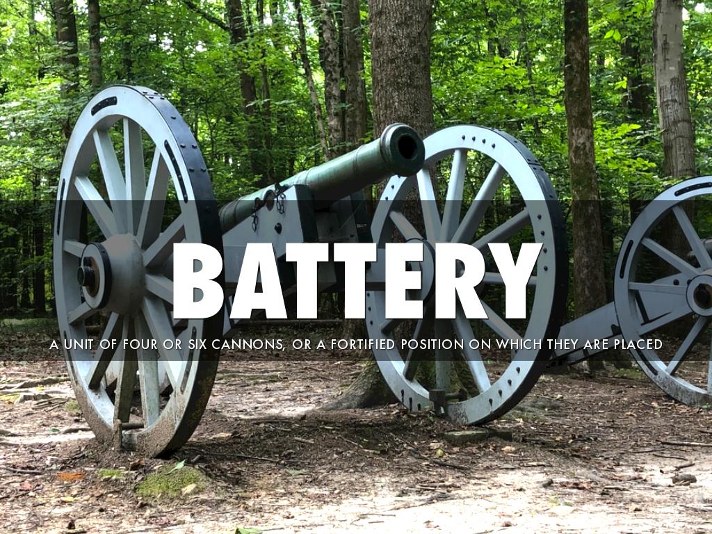 A UNIT OF FOUR OR SIX CANNONS, OR A FORTIFIED POSITION ON WHICH THEY ARE PLACED
