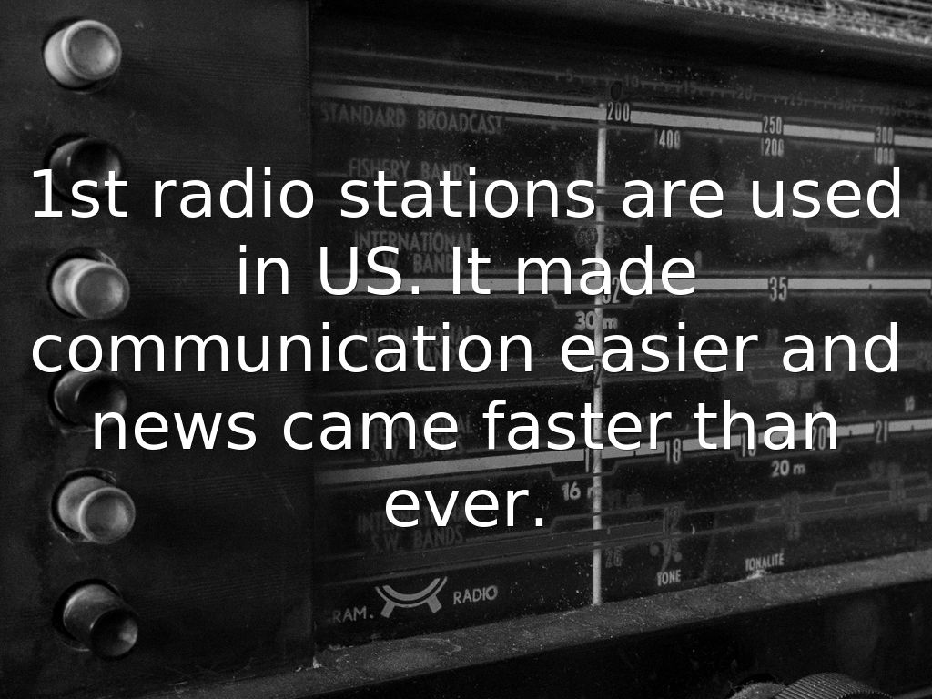 1st radio stations are used in US. It made communication easier and news came faster than ever.