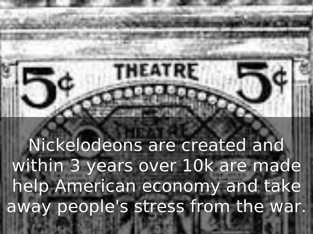 Nickelodeons are created and within 3 years over 10k are made help American economy and take away people's stress from the war.