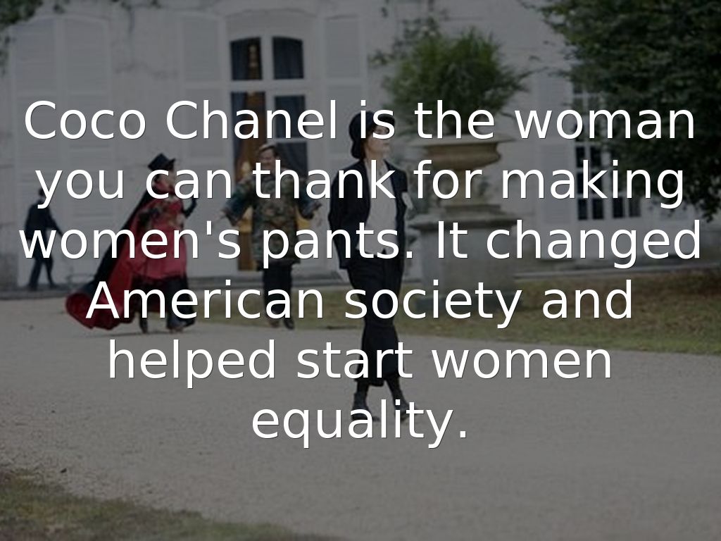 Coco Chanel is the woman you can thank for making women's pants. It changed American society and helped start women equality.