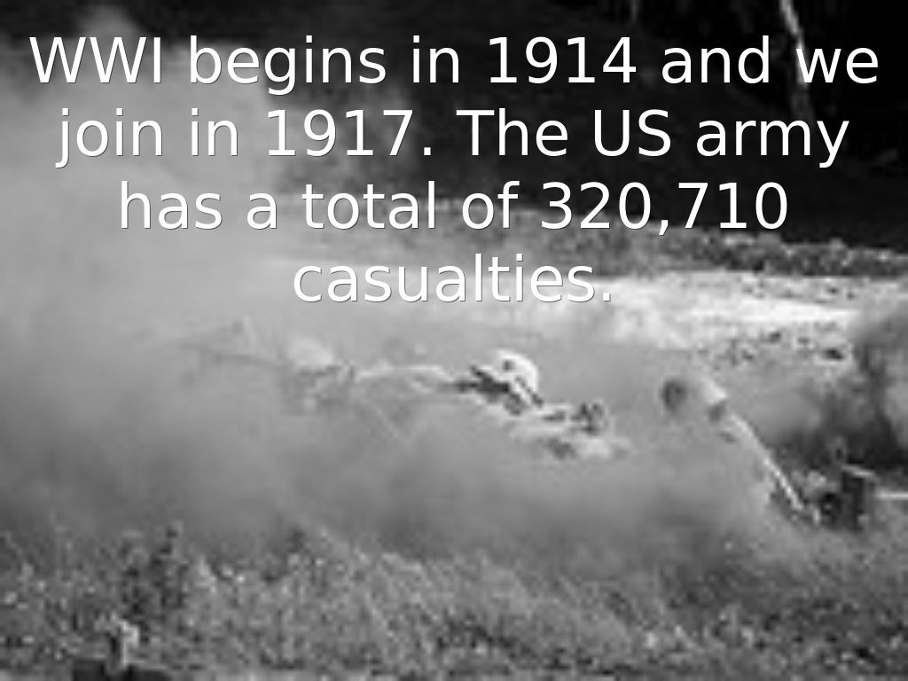 WWI begins in 1914 and we join in 1917. The US army has a total of 320,710 casualties.