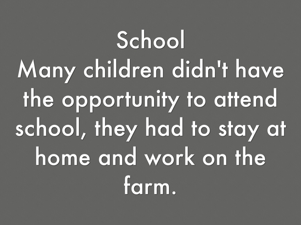 Many children didn't have the opportunity to attend school, they had to stay at home and work on the farm.