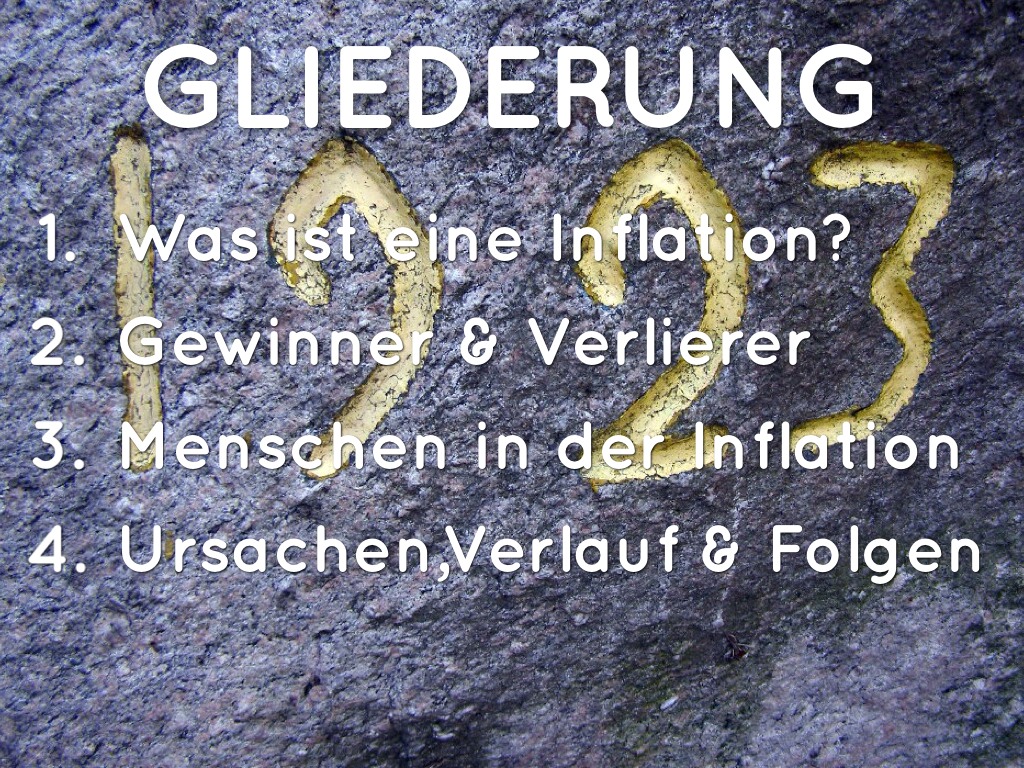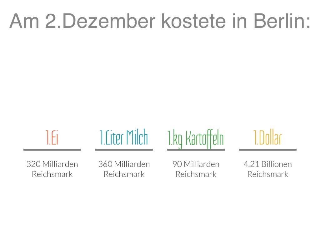 • Inflation von 1914-1923 war einer der radikalsten Geldentwertungen.