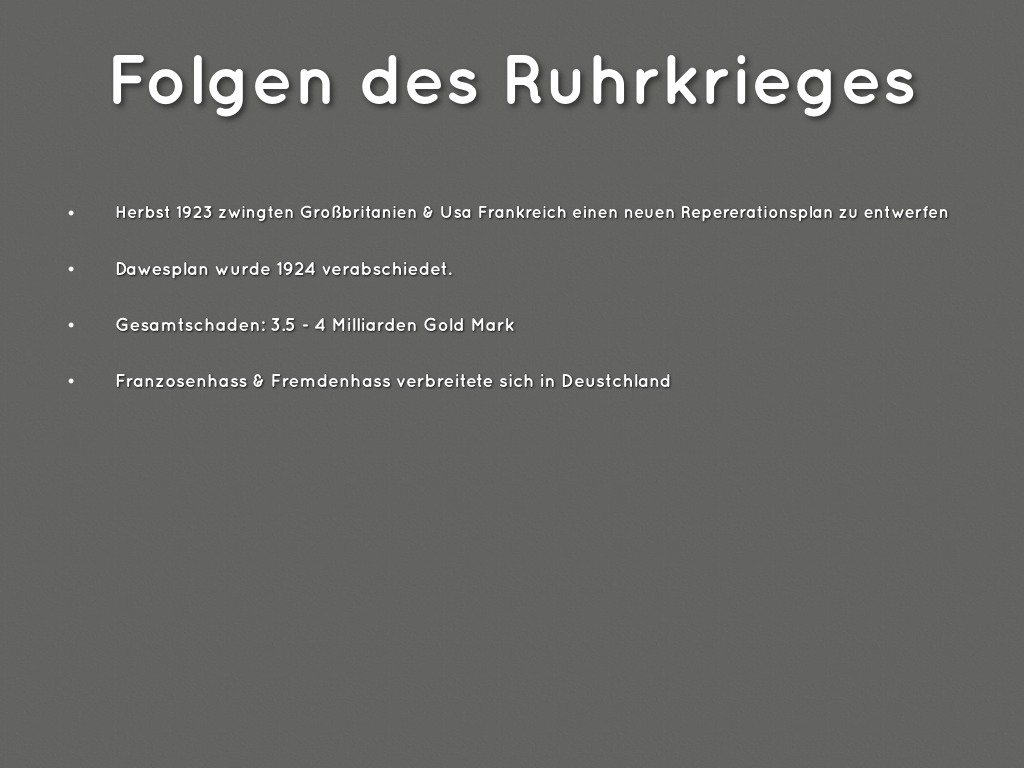 • Herbst 1923 zwingten Großbritanien & Usa Frankreich einen neuen Repererationsplan zu entwerfen