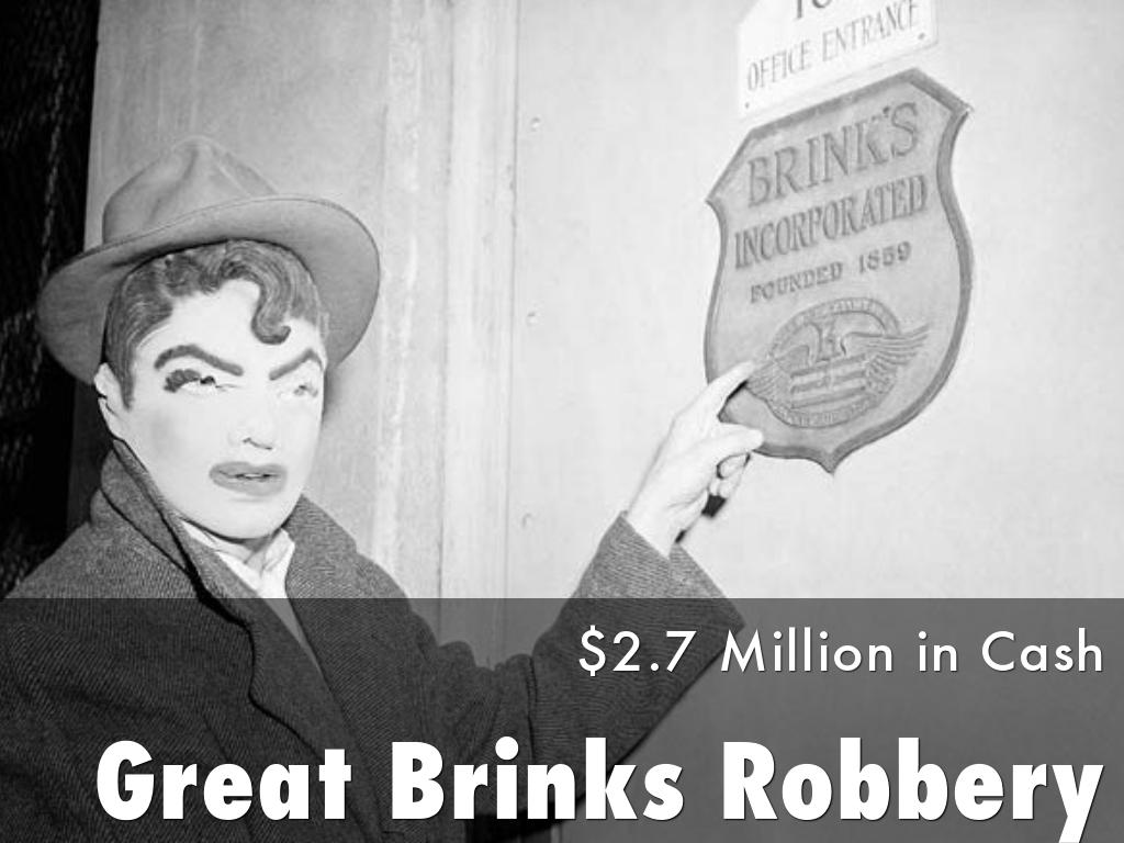 "The Perfect Robbery". Robbers watched the Brinks truck depot for 18 months. The broke in early and changed the cylinders of the locks and stole copies of the architectural plans for the building. They put everything back in place though and went unnoticed though. They stole over $2.7 million in cash and destroyed the getaway truck - cutting it in pieces and dumping it in the local landfill. Joseph O'Keefe gets pinched for other robbery charges and wants his cut of the robbery before the statute of limitations ran out in 6 years. Anthony Pino and others order a hit on O'Keefe which fails and facing the FBI on one side and the mob on the other, O'Keefe ratted out the whole gang.