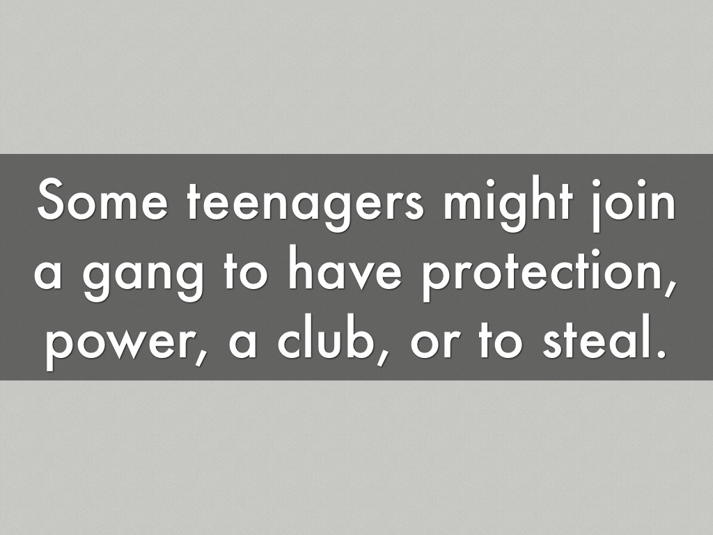 Some teenagers might join a gang to have protection, power, a club, or to steal.