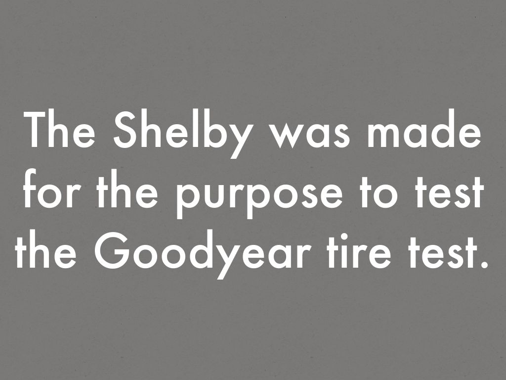 The Shelby was made for the purpose to test the Goodyear tire test.