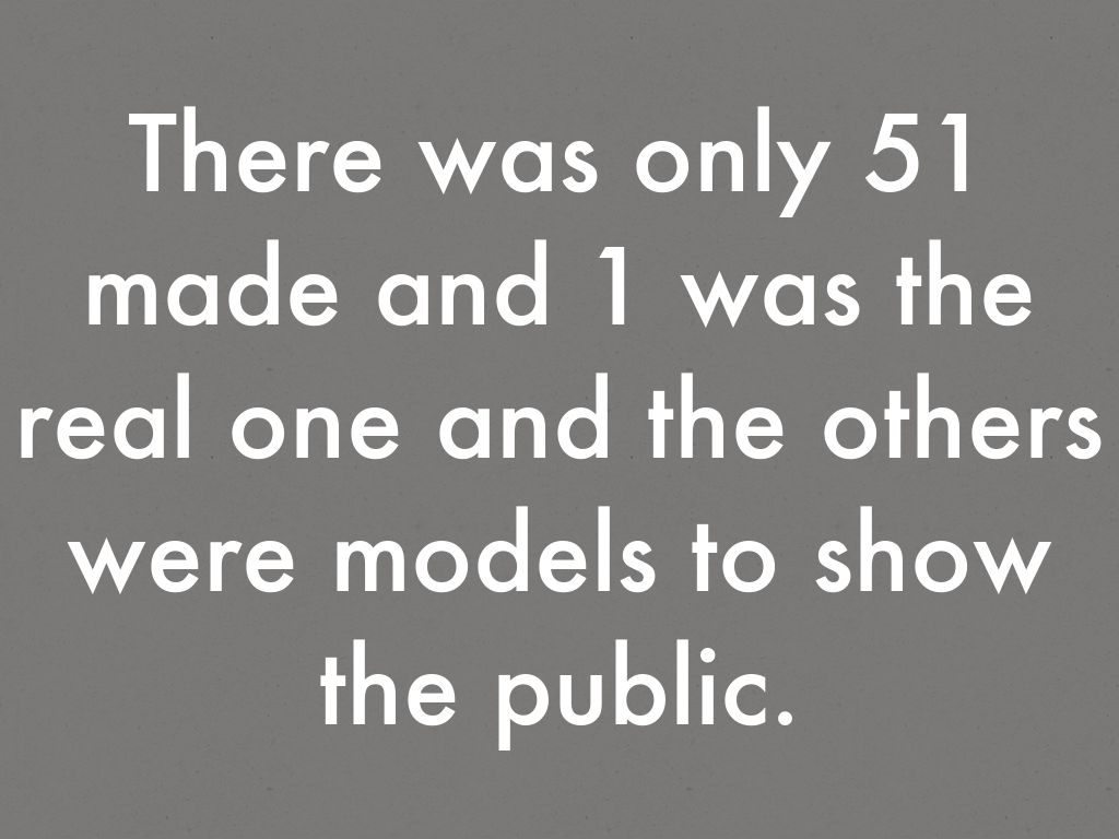 There was only 51 made and 1 was the real one and the others were models to show the public.