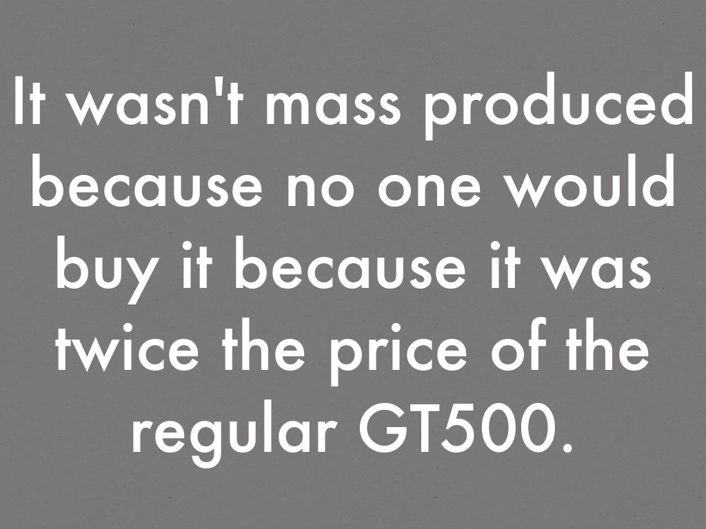 It wasn't mass produced because no one would buy it because it was twice the price of the regular GT500.