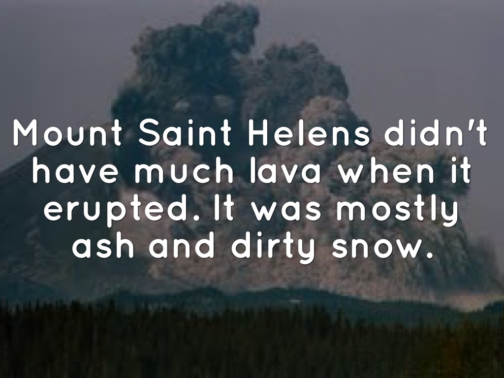 Mount Saint Helens didn't have much lava when it erupted. It was mostly ash and dirty snow.