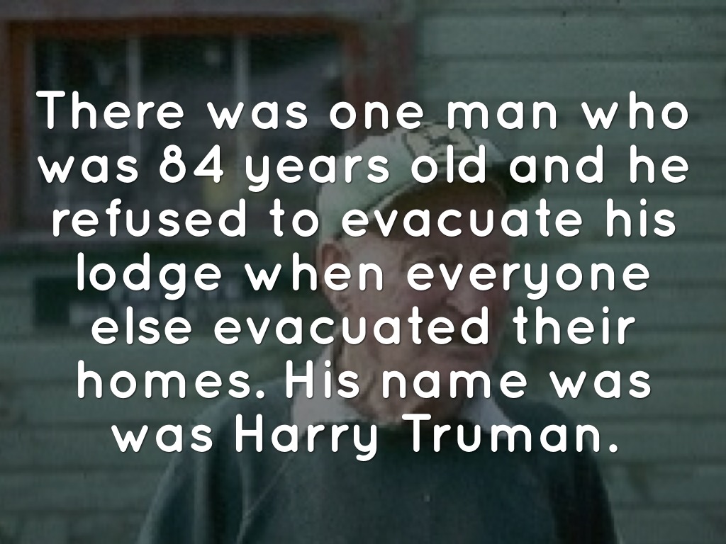There was one man who was 84 years old and he refused to evacuate his lodge when everyone else evacuated their homes. His name was was Harry Truman.