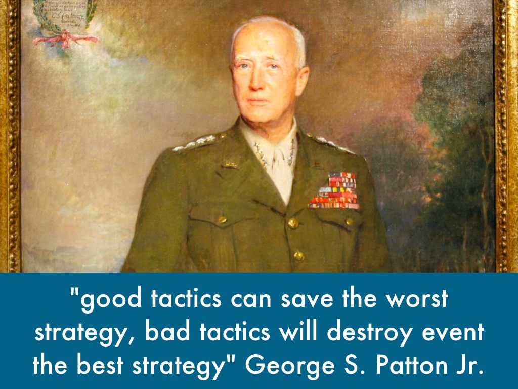 "good tactics can save the worst strategy, bad tactics will destroy event the best strategy" George S. Patton Jr.