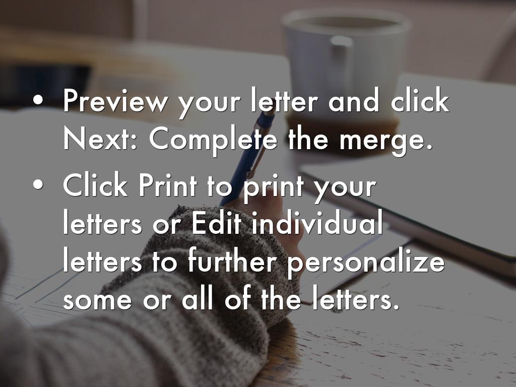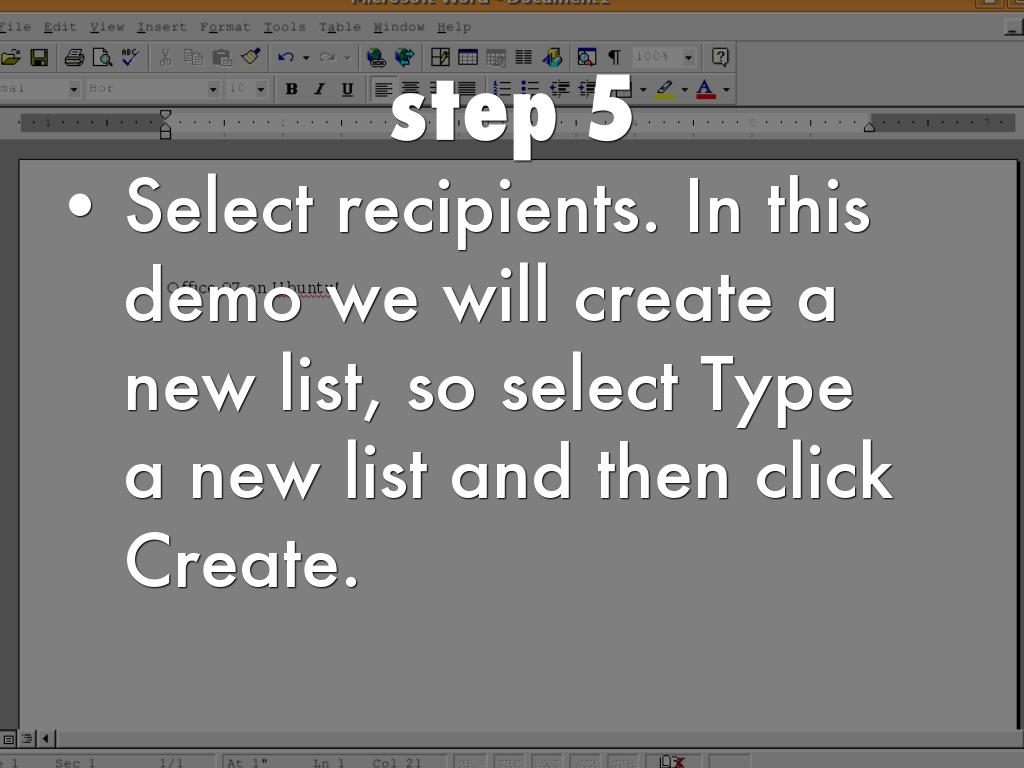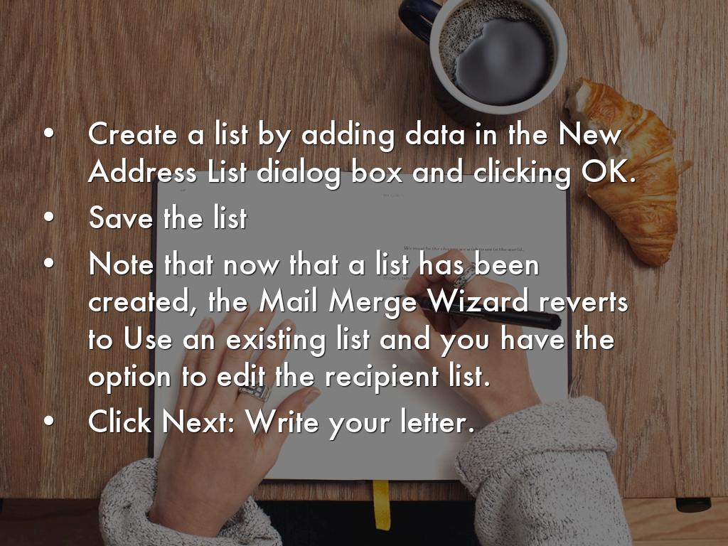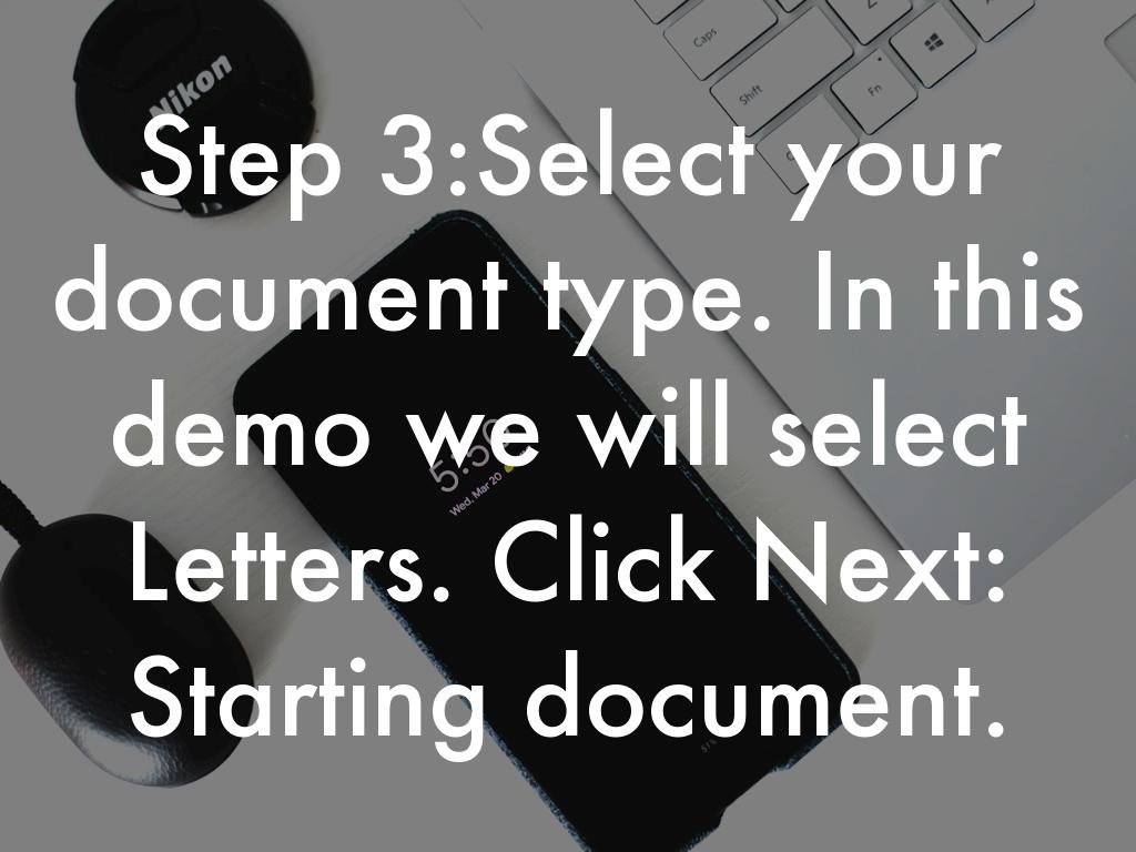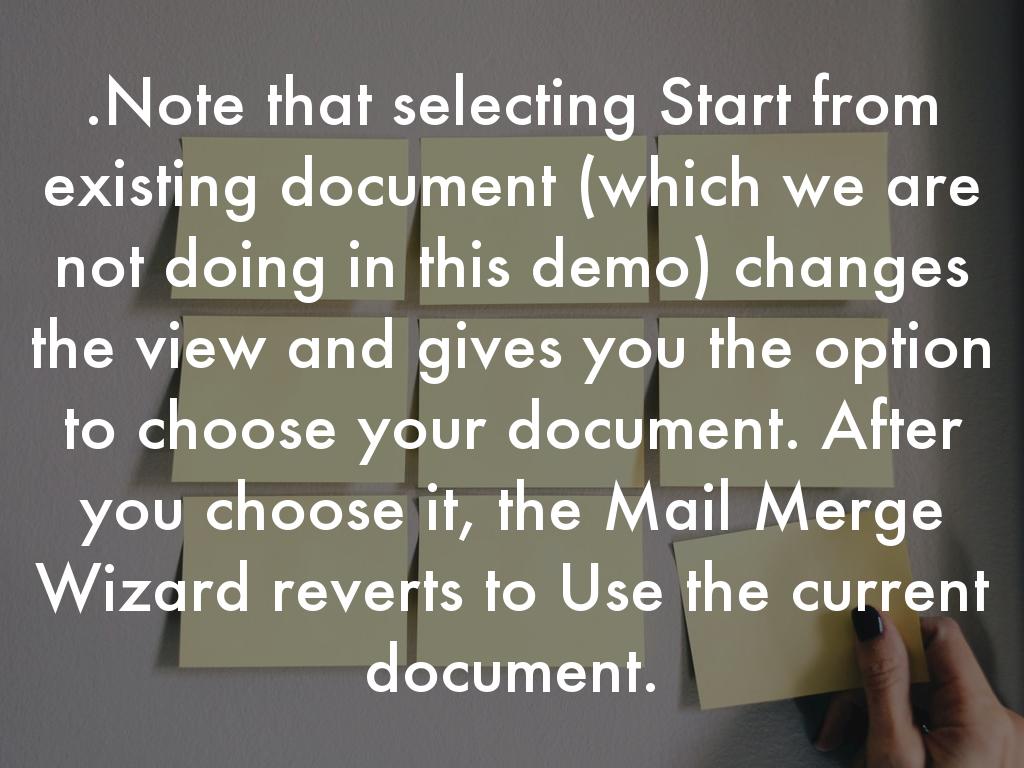 .Note that selecting Start from existing document (which we are not doing in this demo) changes the view and gives you the option to choose your document. After you choose it, the Mail Merge Wizard reverts to Use the current document.
