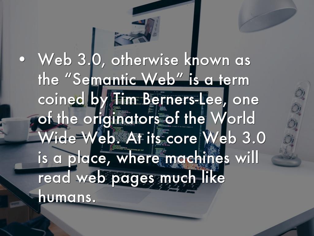 Web 3.0, otherwise known as the “Semantic Web” is a term coined by Tim Berners-Lee, one of the originators of the World Wide Web. At its core Web 3.0 is a place, where machines will read web pages much like humans.