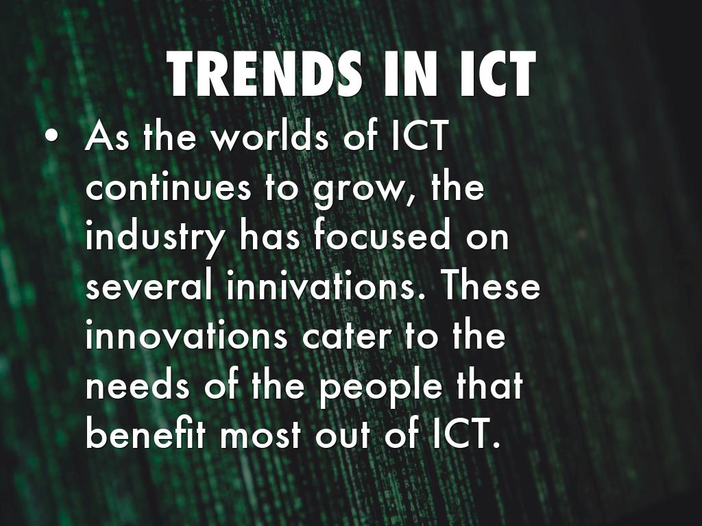 As the worlds of ICT continues to grow, the industry has focused on several innivations. These innovations cater to the needs of the people that benefit most out of ICT.