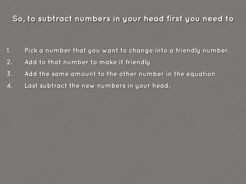 So, to subtract numbers in your head first you need to