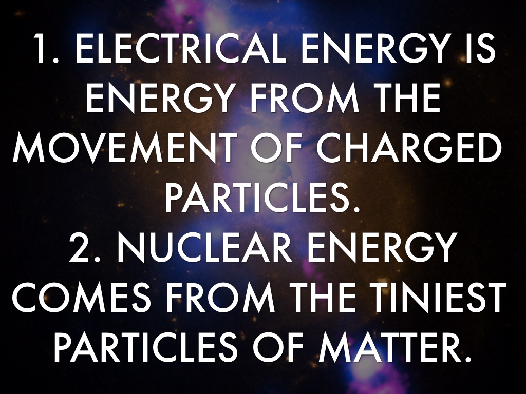 1. ELECTRICAL ENERGY IS ENERGY FROM THE MOVEMENT OF CHARGED PARTICLES.