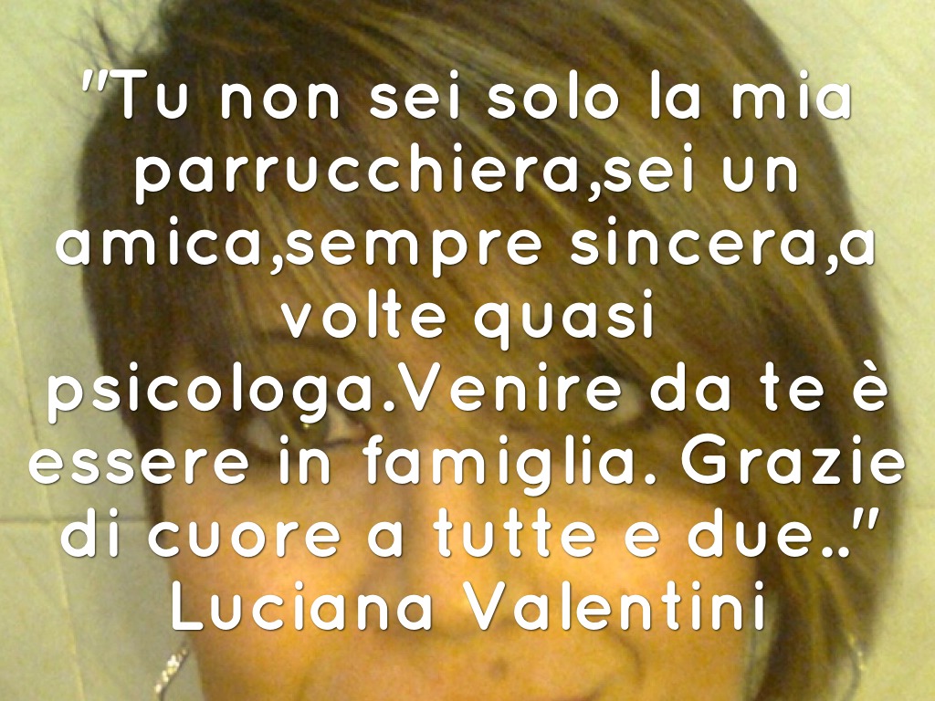 "Tu non sei solo la mia parrucchiera,sei un amica,sempre sincera,a volte quasi psicologa.Venire da te è essere in famiglia. Grazie di cuore a tutte e due.."