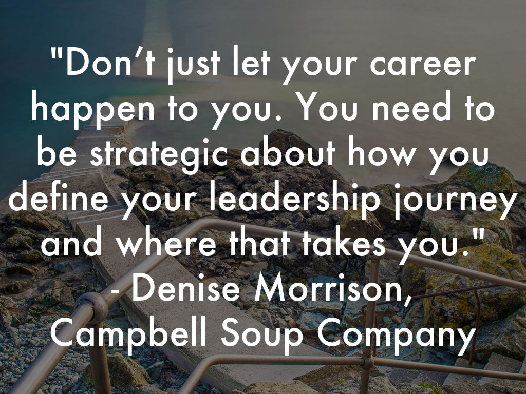 "Don’t just let your career happen to you. You need to be strategic about how you define your leadership journey and where that takes you." - Denise Morrison, Campbell Soup Company