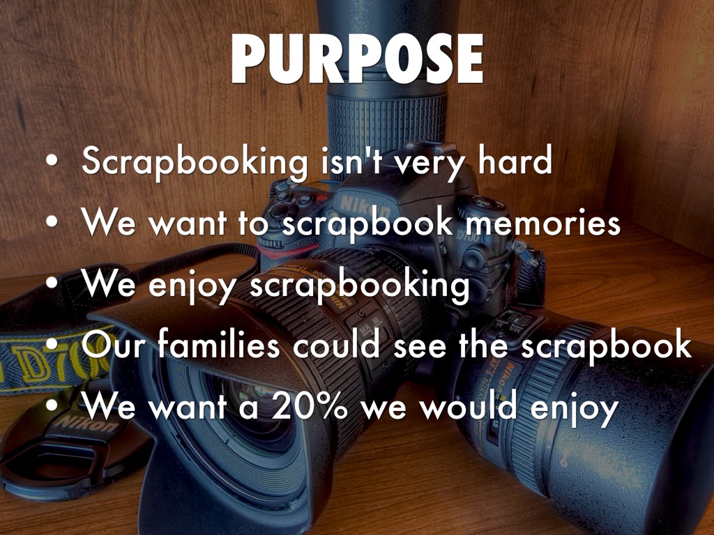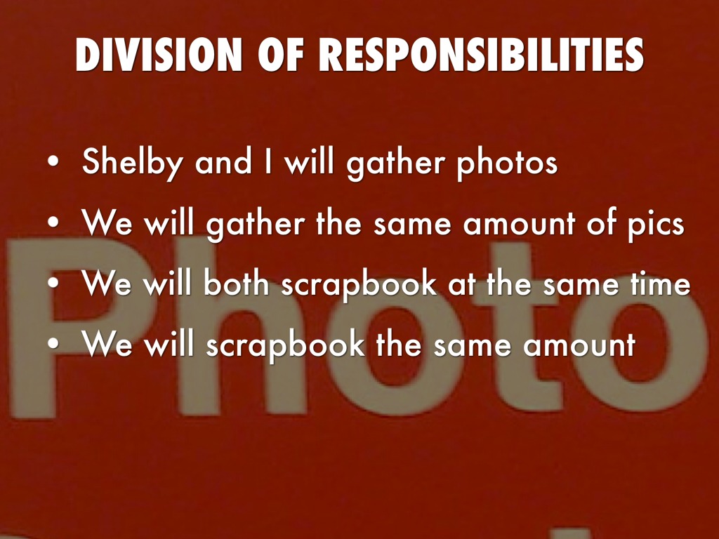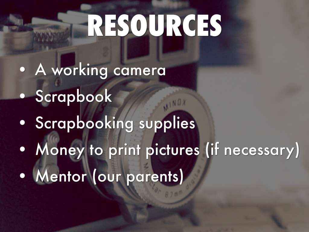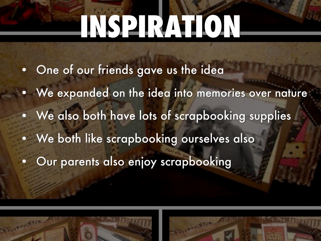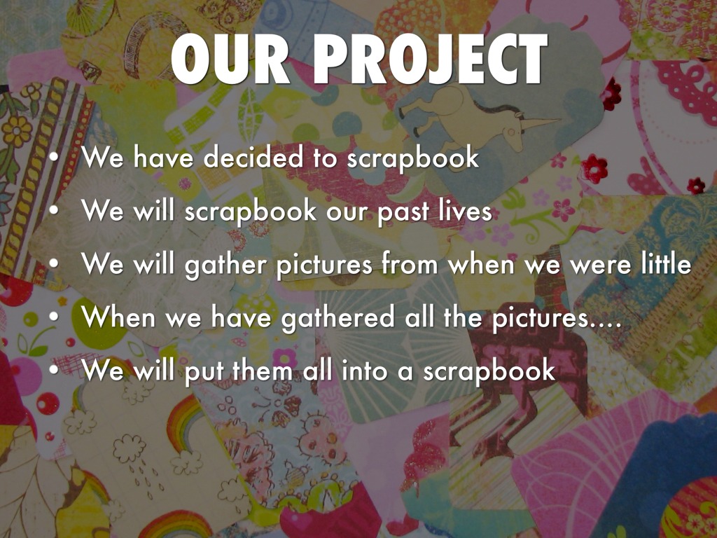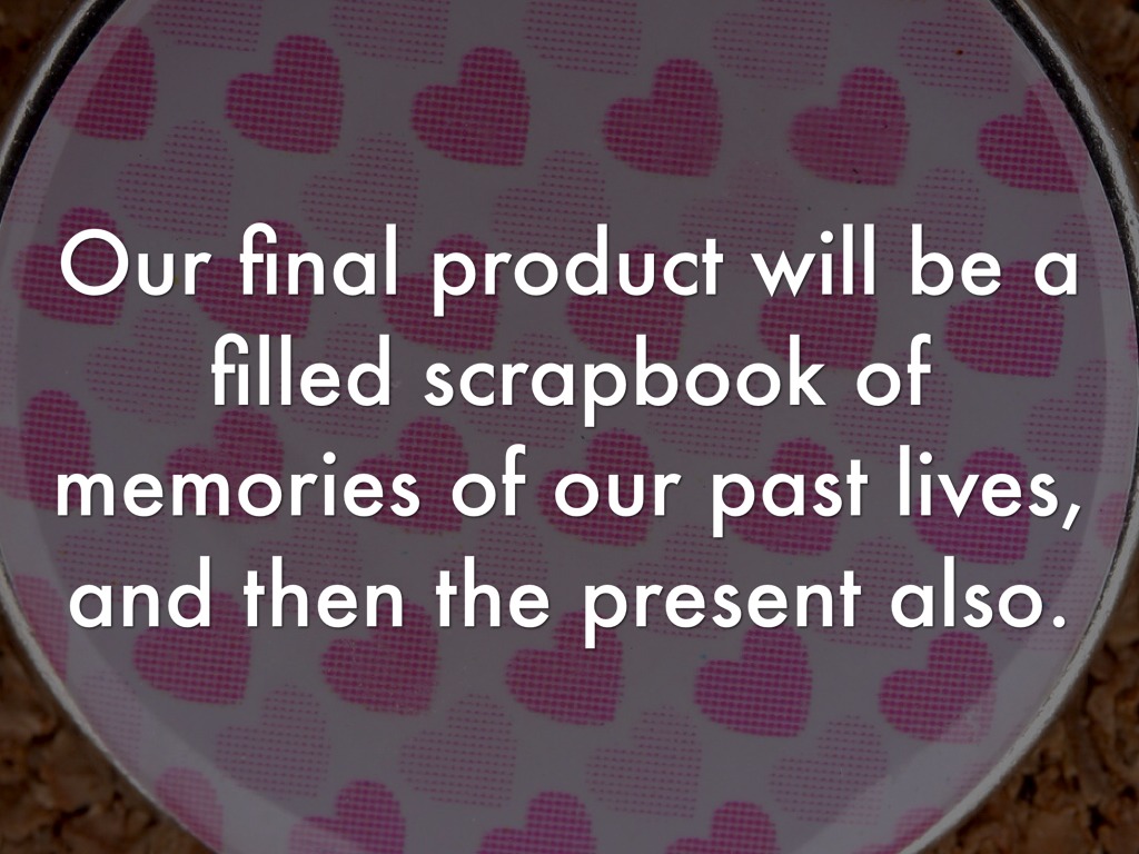 Our final product will be a filled scrapbook of memories of our past lives, and then the present also.