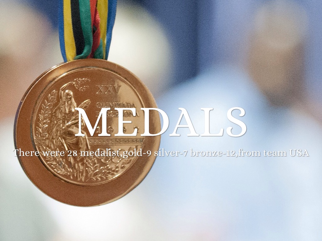 There were 28 medalist,gold-9 silver-7 bronze-12,from team USA