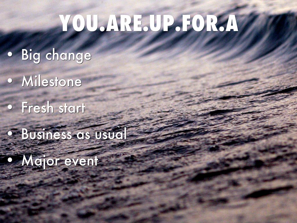 IS THE FIRST YEAR OF THE REST OF OUR LIFE