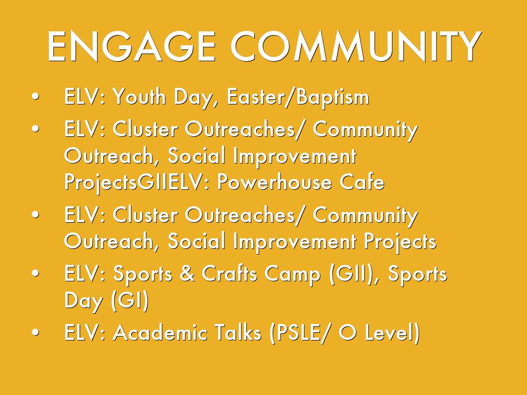 ELV: Cluster Outreaches/ Community Outreach, Social Improvement Projects