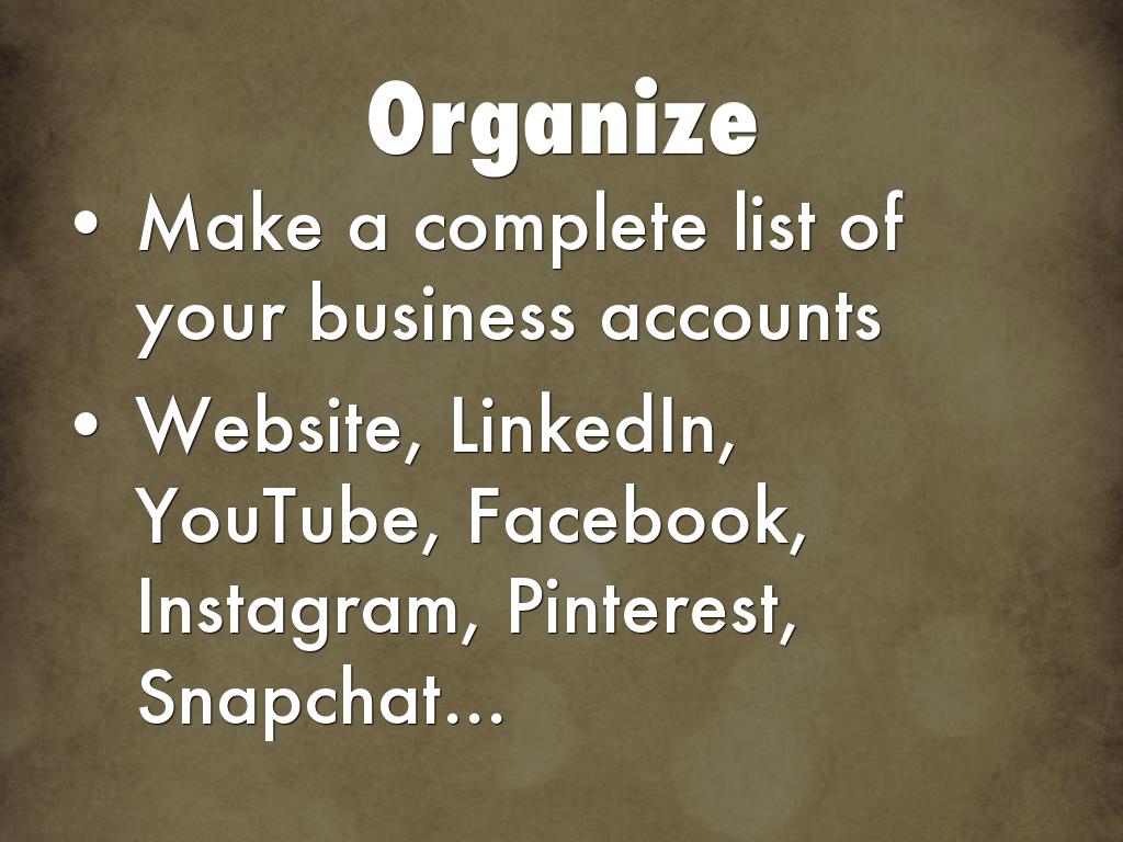 Website, LinkedIn, YouTube, Facebook, Instagram, Pinterest, Snapchat...