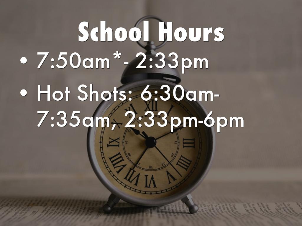 Hot Shots: 6:30am-7:35am, 2:33pm-6pm