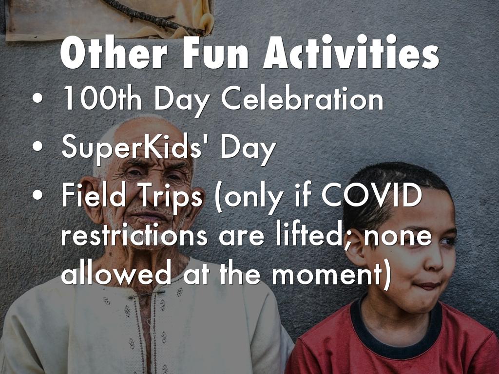 Field Trips (only if COVID restrictions are lifted; none allowed at the moment)