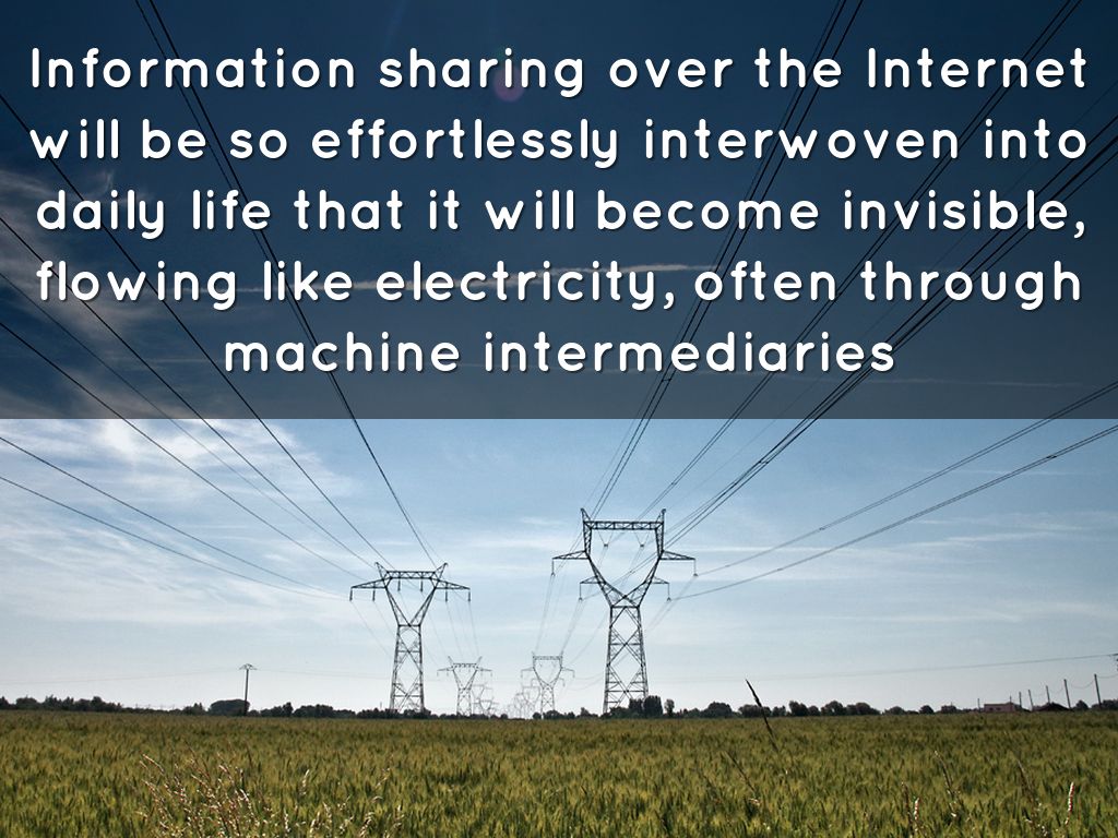 Information sharing over the Internet will be so effortlessly interwoven into daily life that it will become invisible, flowing like electricity, often through machine intermediaries