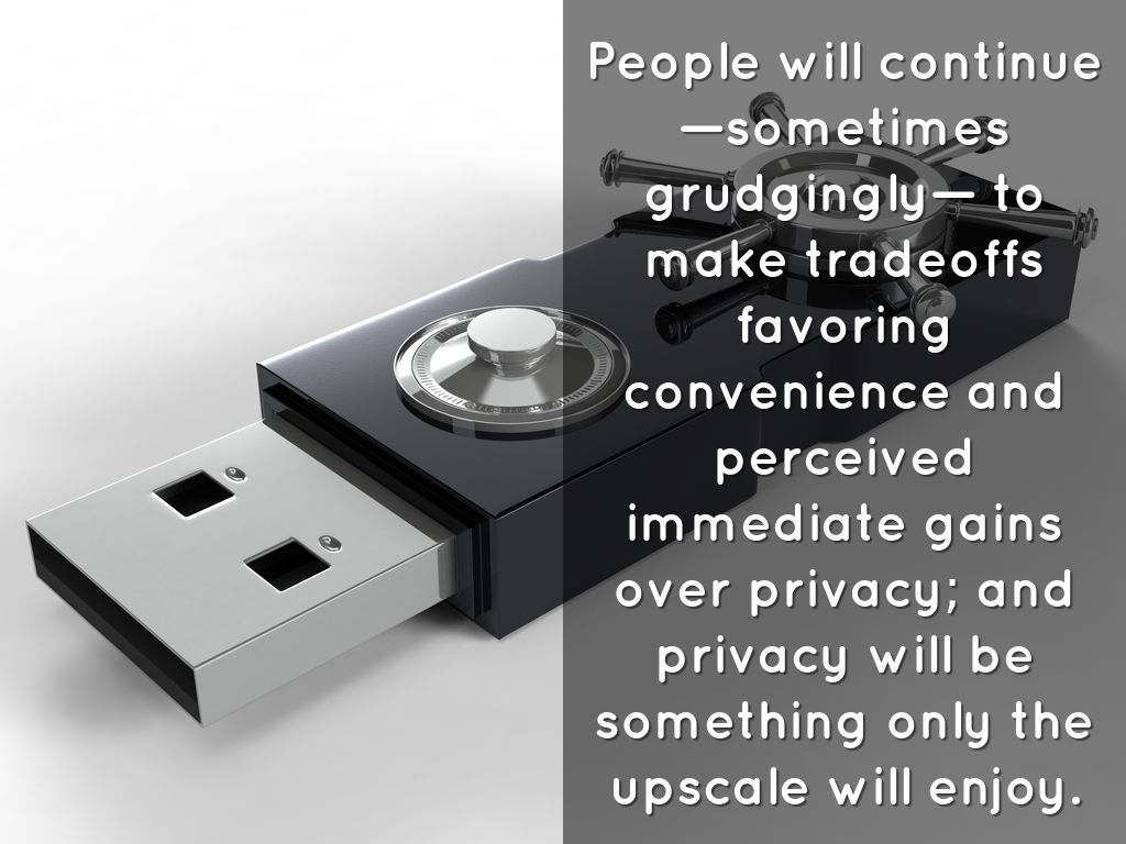 People will continue —sometimes grudgingly— to make tradeoffs favoring convenience and perceived immediate gains over privacy; and privacy will be something only the upscale will enjoy.