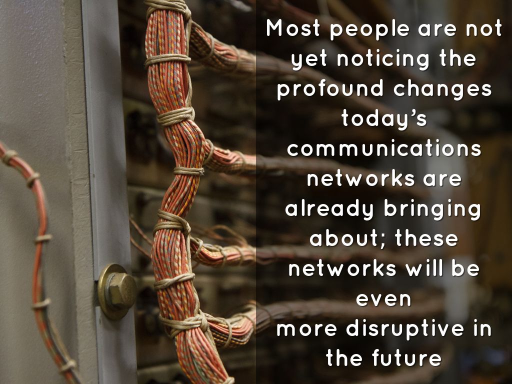 Most people are not yet noticing the profound changes today’s communications networks are already bringing about; these networks will be even more disruptive in the future