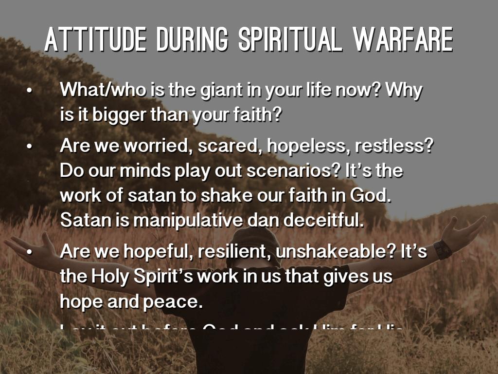 Are we worried, scared, hopeless, restless? Do our minds play out scenarios? It’s the work of satan to shake our faith in God. Satan is manipulative dan deceitful.