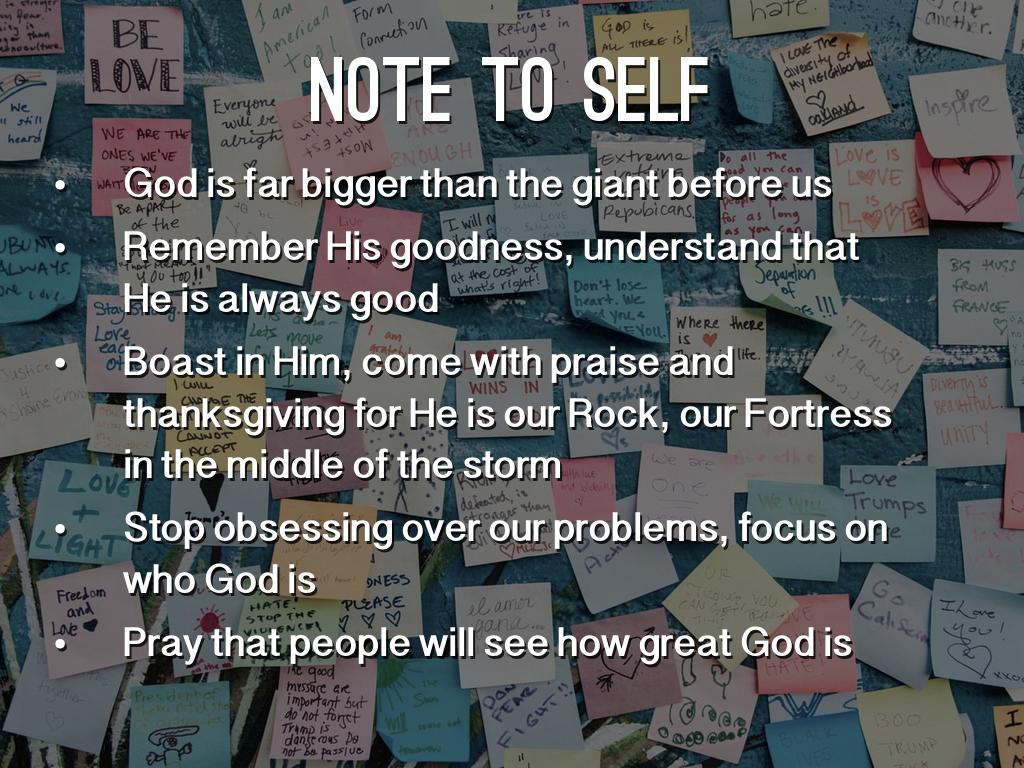 What/who is the giant in your life now? Why is it bigger than your faith?