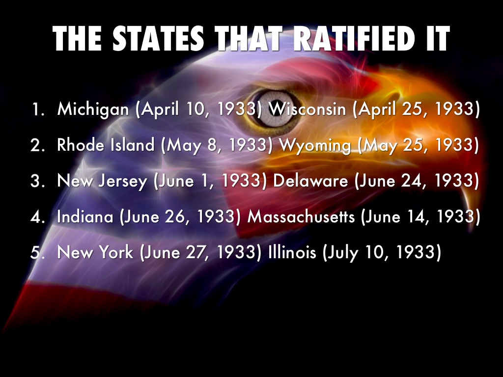 This is the summary of my amendment. The summary is that this amendment made it so that people can drink freely so basically banning prohibition
