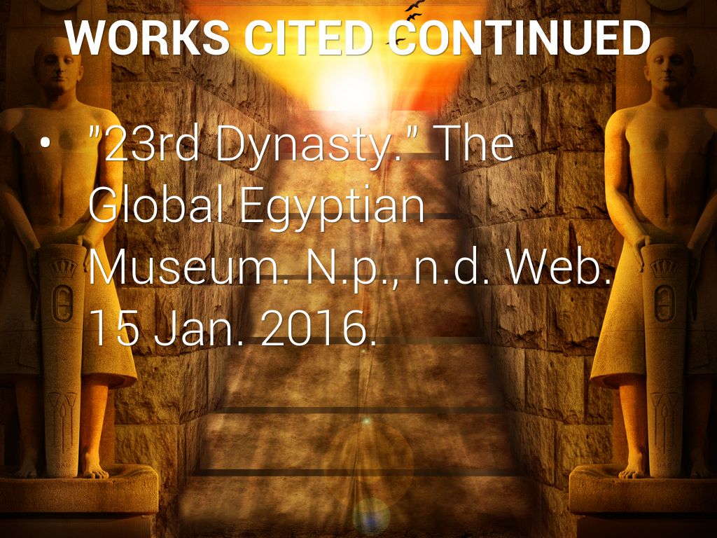 "23rd Dynasty." History of Egypt ***. N.p., n.d. Web. 15 Jan. 2016.