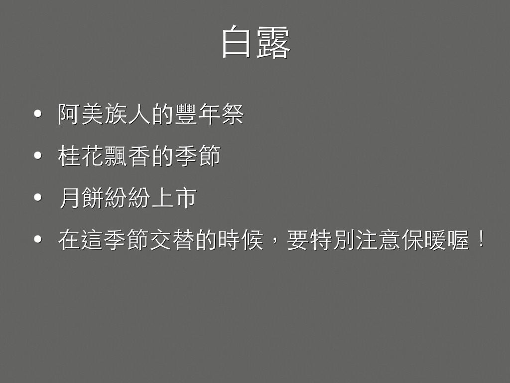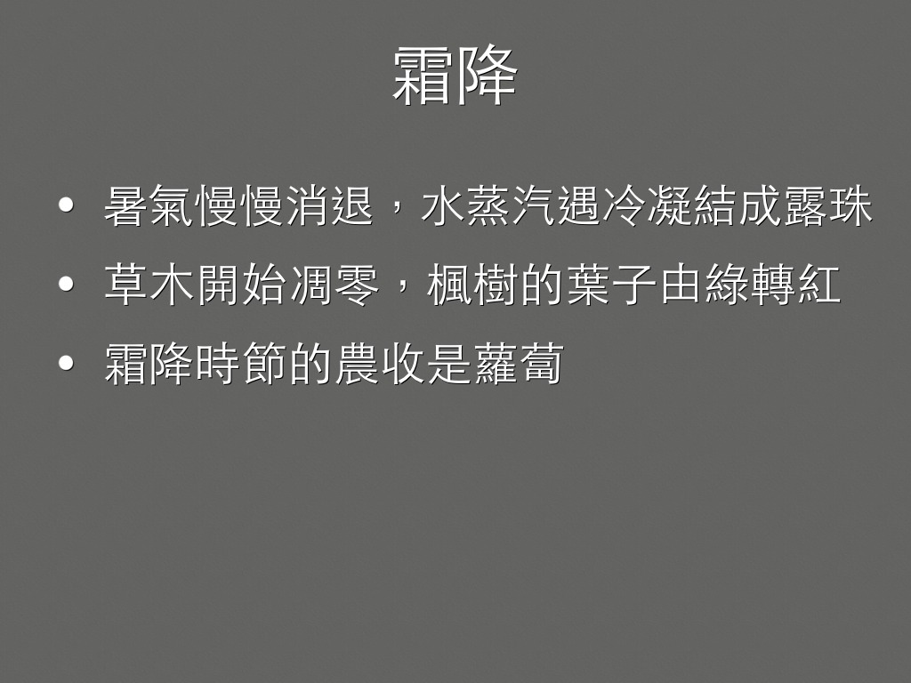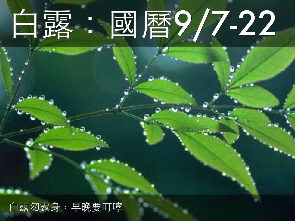 • 暑氣慢慢消退,水蒸汽遇冷凝結成露珠