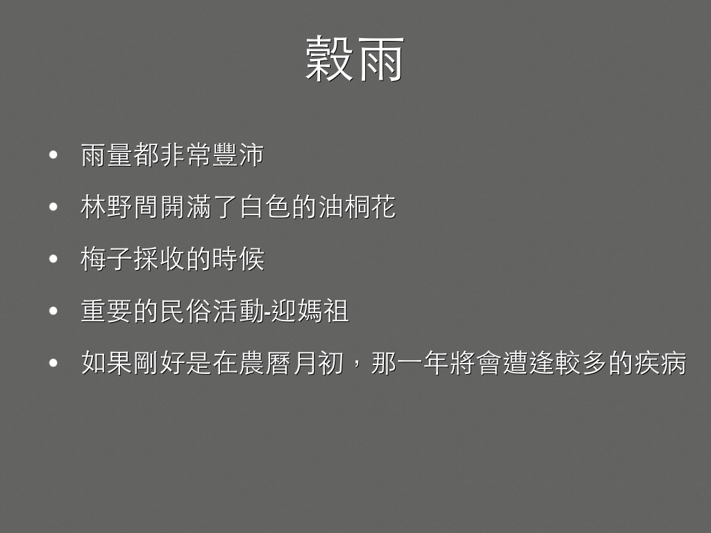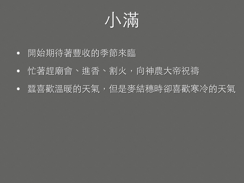 • 蠶喜歡溫暖的天氣,但是麥結穗時卻喜歡寒冷的天氣