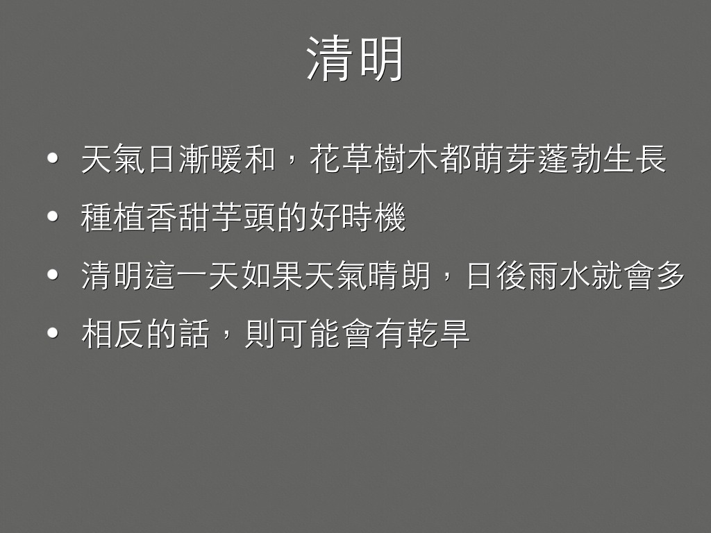 • 清明這一天如果天氣晴朗,日後雨水就會多