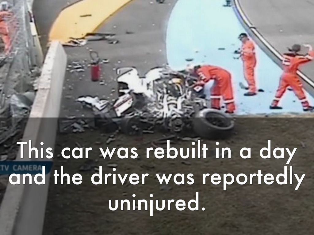 This car was rebuilt in a day and the driver was reportedly uninjured.